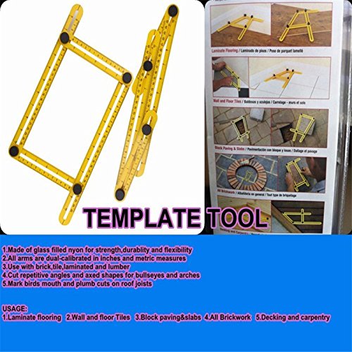 Angle-Izerは、タイル、レンガの舗装材、木材、ラミネートのプロフェッショナルなレイアウトを作成するための究極のテンプレートツールです。革新的な4面機構は、作業領域の形状にすばやく形成され、ワー??クピースを切断するためのステンシルとして使用できます。プロフェッショナルのために、Angle-Izerは屋根の梁の上に雄牛の目、アーチ、および垂直カットを作るために使用できます。あなたのためには、角度Izerを使用してレンガのパティオやタイルの床を敷くのを助けてください。 Angle-Izerの可能性は無限です。