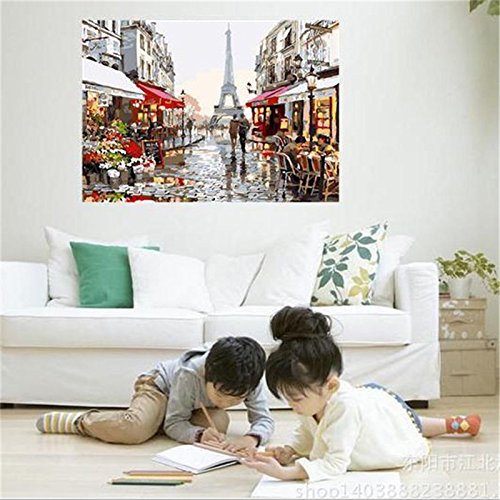 Merssavo 歓迎絵画初心者DIYペイントバイナンバーキットキャンバスペインティング油絵ナンバーカラーペインティングParis Flower Street