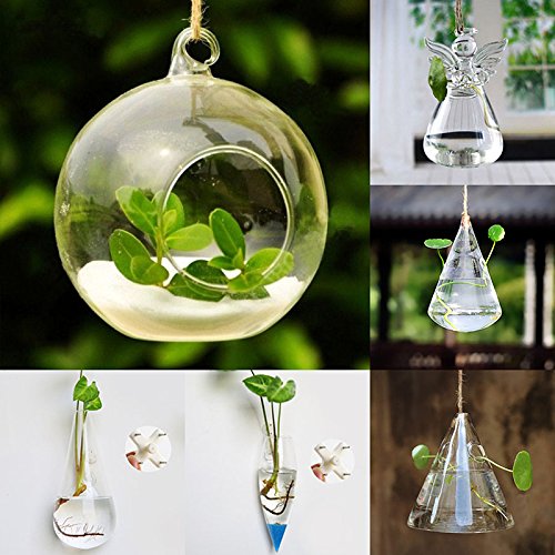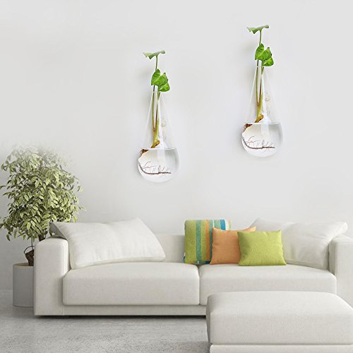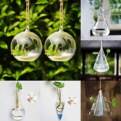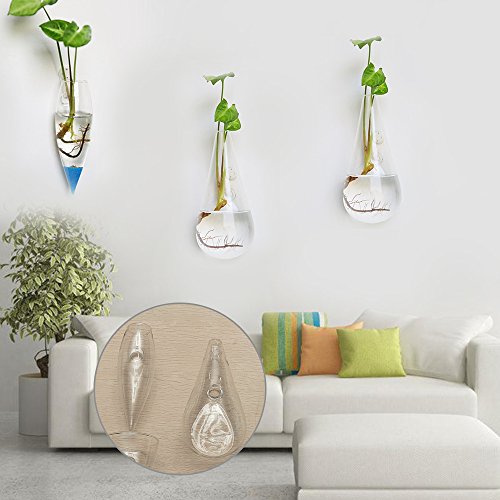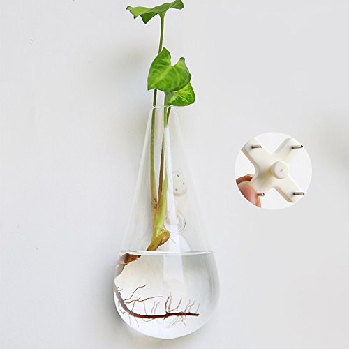 Merssavo クリエイティブドロップシェイプ吊りガラスフラワープランターの花瓶テラリウムの容器ホームガーデンの装飾