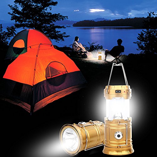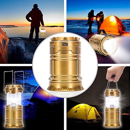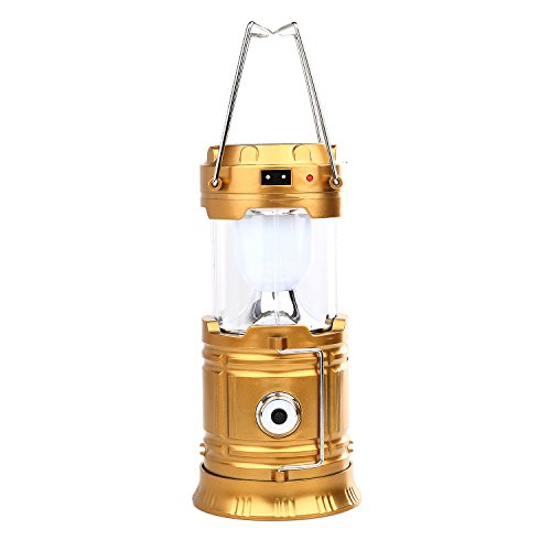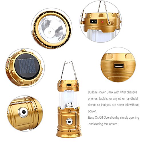 Merssavo LEDランタン懐中電灯 - キャンプランタンポータブル屋外防水キャンプライト超明るい充電式ランタン、ソーラーライト(ゴールデン、折り畳み式)