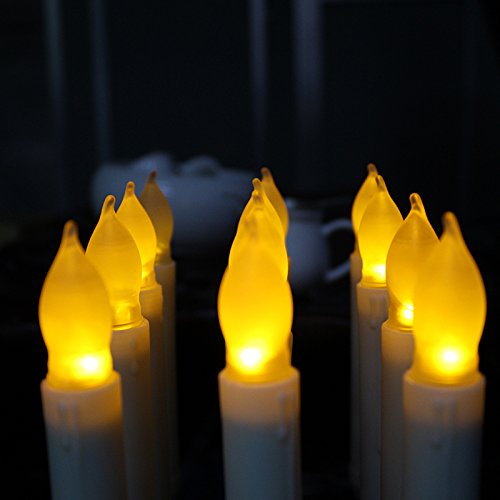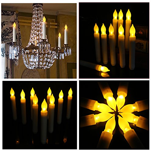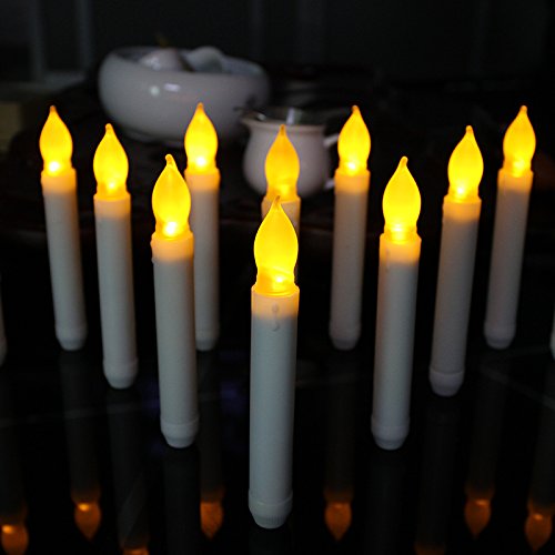 micandle 12セットイエローミニ電池式AmberちらつきLEDテーパキャンドル、イエローFlamelessバッテリLEDキャンドルスティック – 電池含まない イエロー c_taper_long_bulb