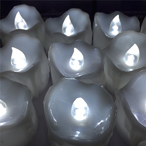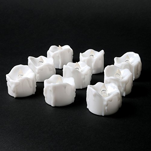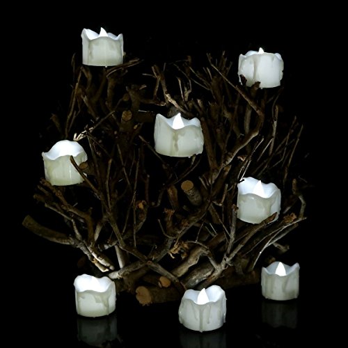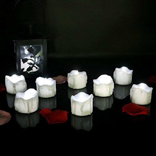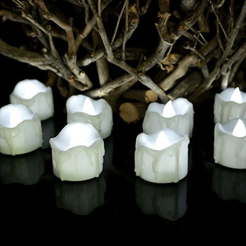 micandle 12pcsちらつきフレームレスキャンドルLEDティーライトキャンドル、SmokelessリアルなライトワックスDripped LED Tealights、電池式電子キャンドル、ウェディング、パーティー、Chirstmas ホワイト cdl_wax_f_cool