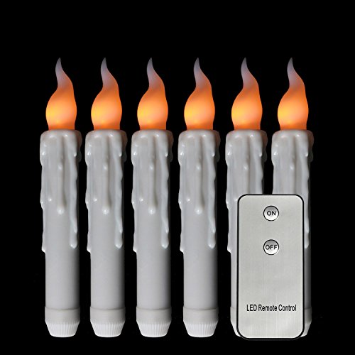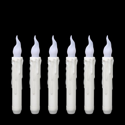 micandleのセット6 Flameless LEDテーパキャンドルwithタイマー、ちらつき黄色のバッテリ、アイボリーキャンドルスティック、6時間18時間オフ(バッテリは含まれません) Taper candles