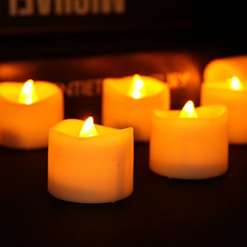 - 3)EASY TO USE IT! Toggle the ON-OFF switch on the bottom to turn on/off the tea light,1.4x1.4 inch yellow flicker light is good for romantic setting