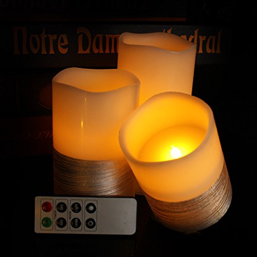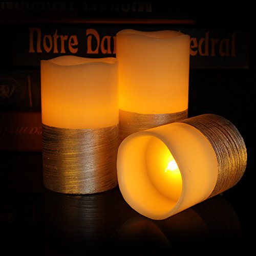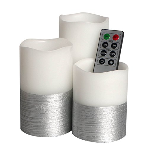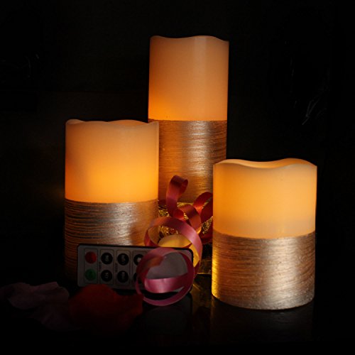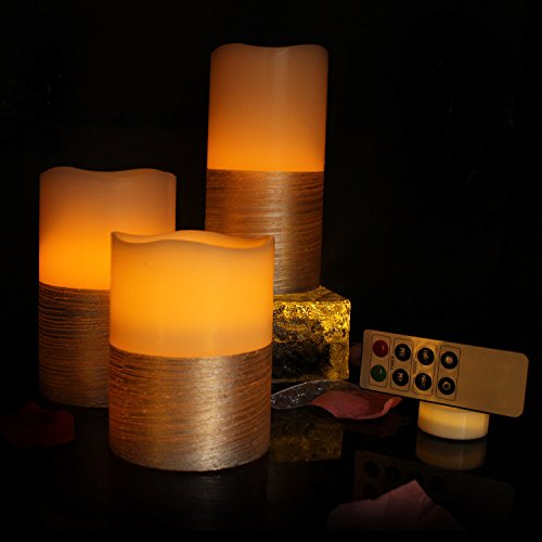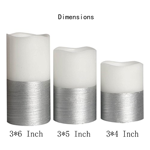 - 設定されたゴージャスなフレイムレスキャンドル – 3つの柱は本物のワックスがちらつく炎のLEDキャンドルauto-timer付きです。すべてを満たして3differentサイズお選びください。3 " D * ( 4インチ/ 5インチ/ 6インチ)を使用することができます。