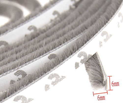 1pc 6 mm x 6 mmドアウィンドウフレームExcluderブラシストリップセルフ粘着5 M