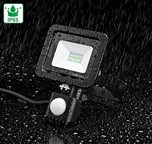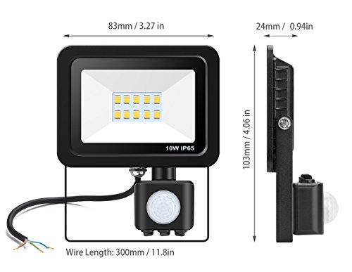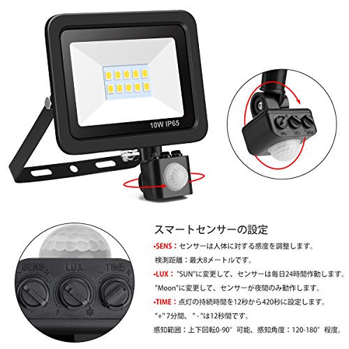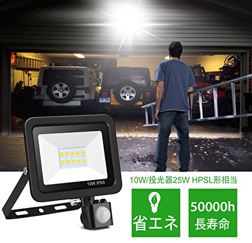 Minger 人感センサーライト 明かりセンサーライト 防犯ライト LED投光器 高品質 広配光タイプ 省エネ IP65防水防雨防塵 800lm 10W/投光器25W HPSL形相当 6000K 昼白色 ホーム用 プラグなし (10W 人感センサー)