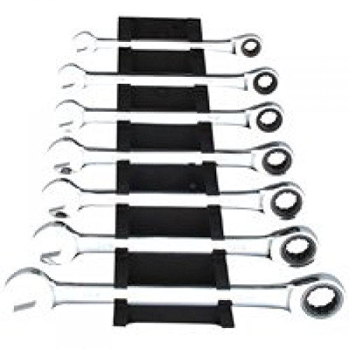 Mint craft PG7I 7 Piece Ratchet Wrench Set Sizes: 5/16', 3/8', 7/16', 1/2', 9/16', 5/8' and 3/4'. 72 tooth ratcheting box-end with 5 degree of arc for use in tight space conditions. Drop forged chrome vanadium steel. Mirror polish.