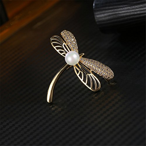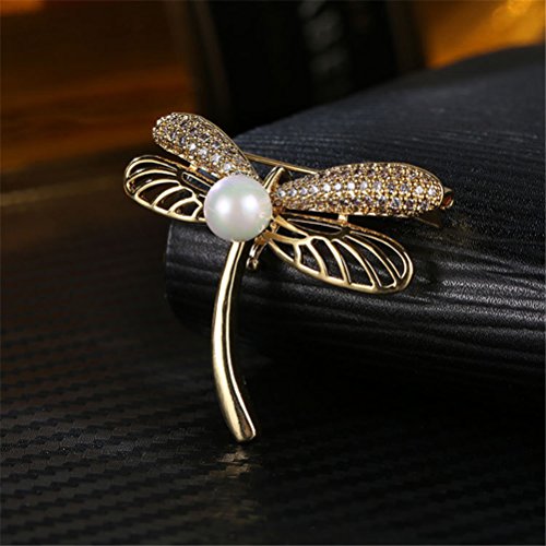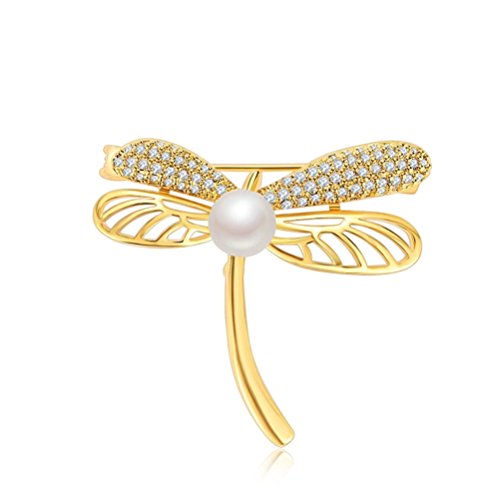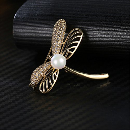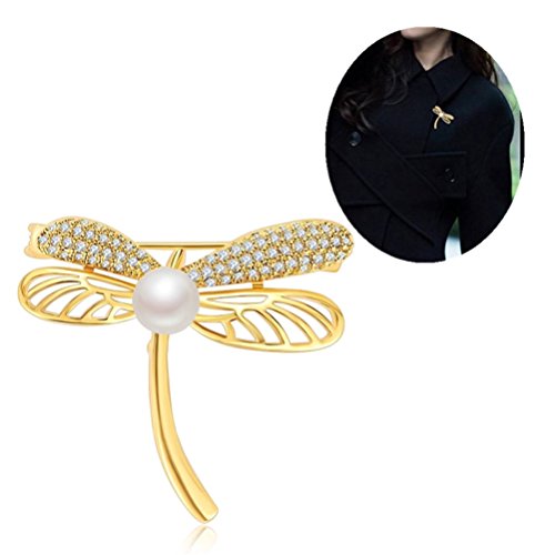 优品 水晶のブローチ トンボ真珠レトロな金色の胸飾り コートのスーツが飾られている 気質品 母の日のプレゼント ファッションアクセサリー