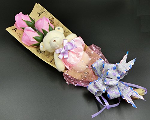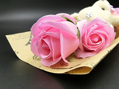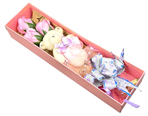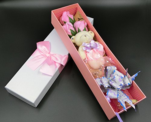 Miwoluna くまのぬいぐるみ付き ローズブーケ リボン付きのボックス ほのかな香り付き 各色あります (03. ピンク)