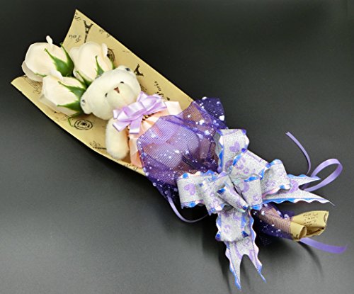 - くまのぬいぐるみが付いた、薔薇の造花ブーケ