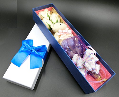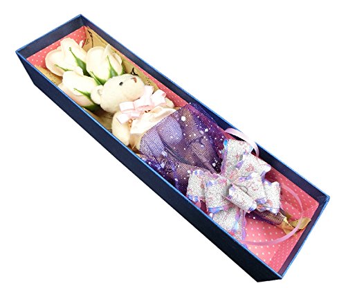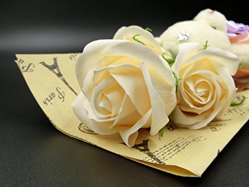 (Miwoluna) ブーケ 花束 ローズ くまのぬいぐるみ付き リボン付きのボックス ほのかな香り付き 各色 (04. シャンパーニュ)