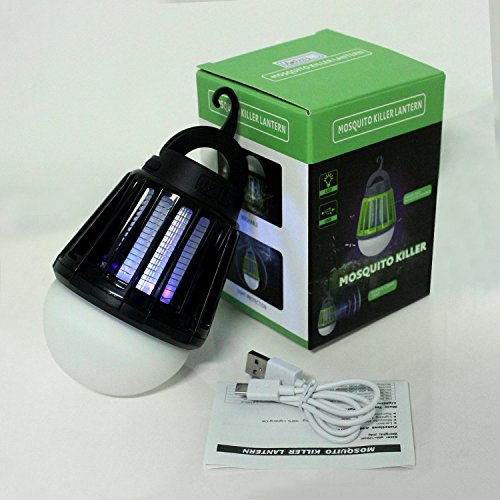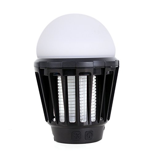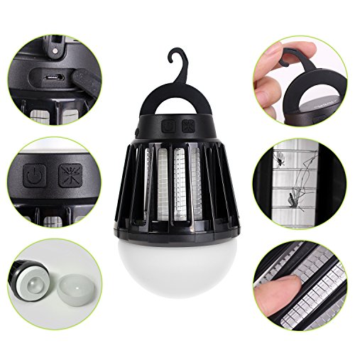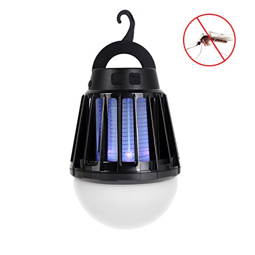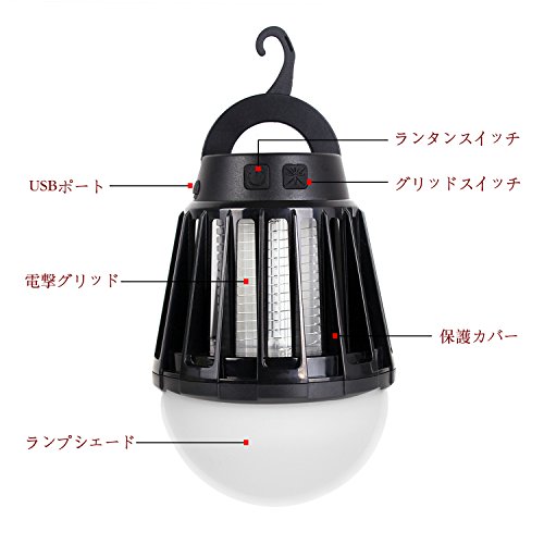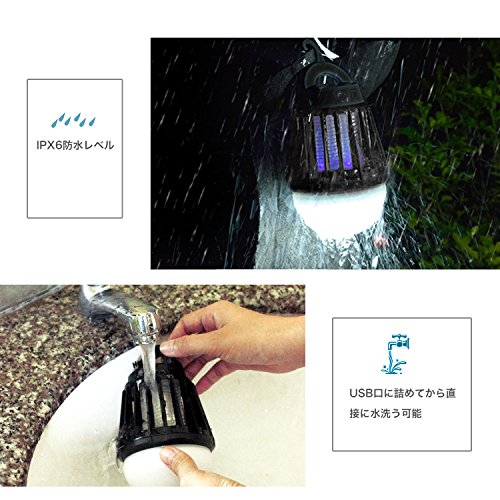電撃殺虫器 UV紫光誘引式 静で安心 蚊取りと照明両用 2000mAH容量 USB充電可能 IPX6防水機能 (黒)