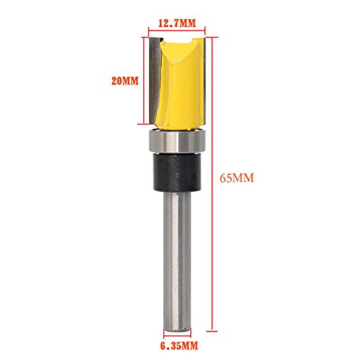 ルータービット フラッシュトリムビットセット 1/4 "シャンクルータビットベアリング エッジ木工フルート 1/2*20 黄色い