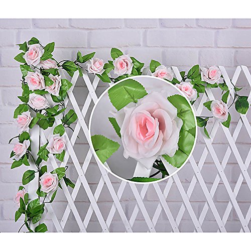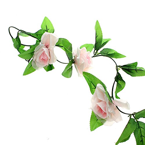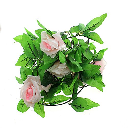 壁掛け インテリア アンティーク 雑貨 造花 人工 フェイク 壁掛 グリーン 緑 植物 吊り人工の偽のバラの花 緑の葉 花輪 ホーム飾り用 結婚式用 ライトピンク