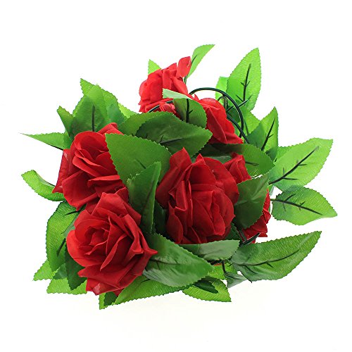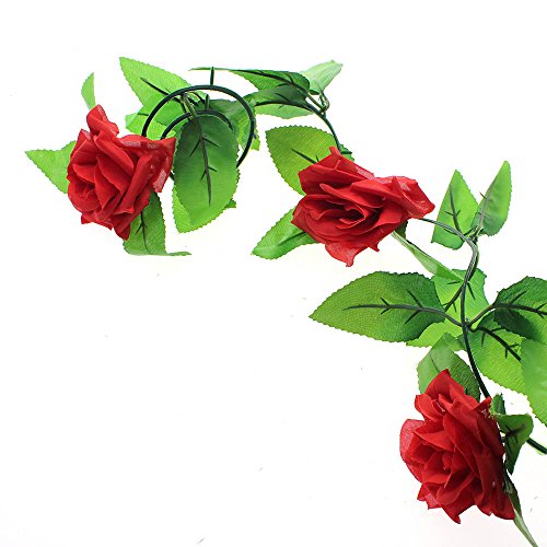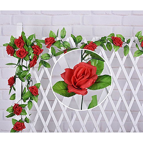 壁掛け インテリア アンティーク 雑貨 造花 人工 フェイク 壁掛 グリーン 緑 植物 吊り人工の偽のバラの花 緑の葉 花輪 ホーム飾り用 結婚式用 レッド