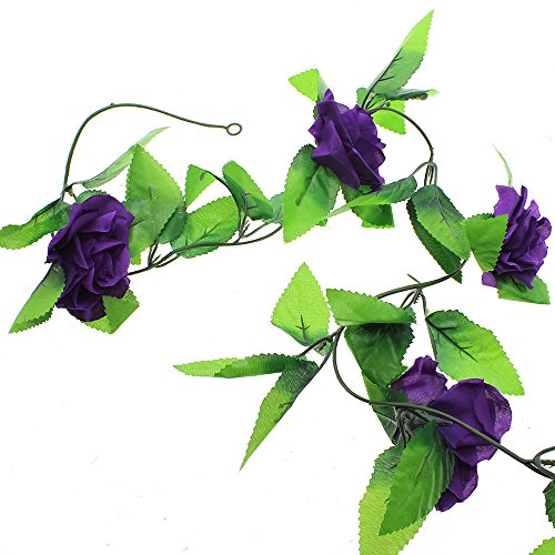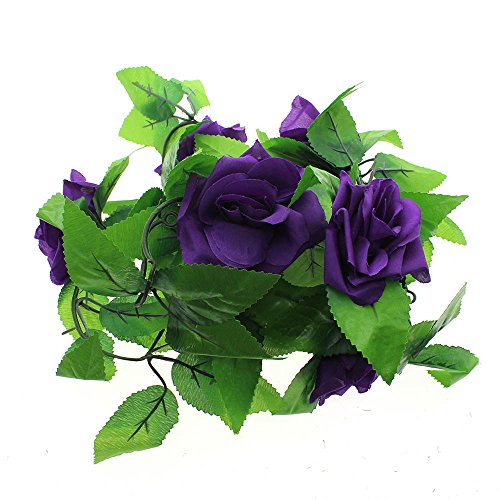 壁掛け インテリア アンティーク 雑貨 造花 人工 フェイク 壁掛 グリーン 緑 植物 吊り人工の偽のバラの花 緑の葉 花輪 ホーム飾り用 結婚式用 紫