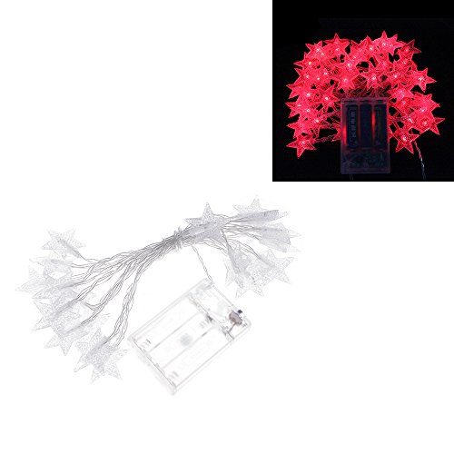 3M ledバッテリーフェアリーストリングライト イルミネーションライト led イルミネーション 電池式 クリスマス 飾りライト 5つ星のスター コンセント不要 クリスマスパーティーウェディング用 レッド