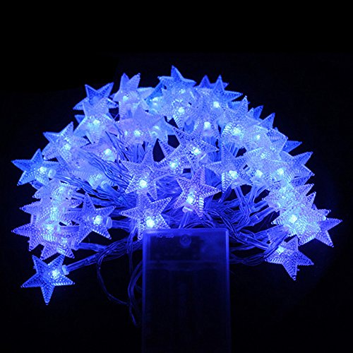 6M ledバッテリーフェアリーストリングライト イルミネーションライト led イルミネーション 電池式 クリスマス 飾りライト 5つ星のスター コンセント不要 クリスマスパーティーウェディング用 ブルー