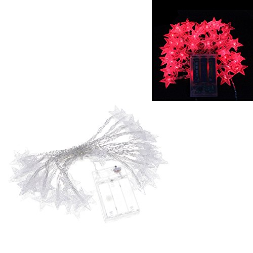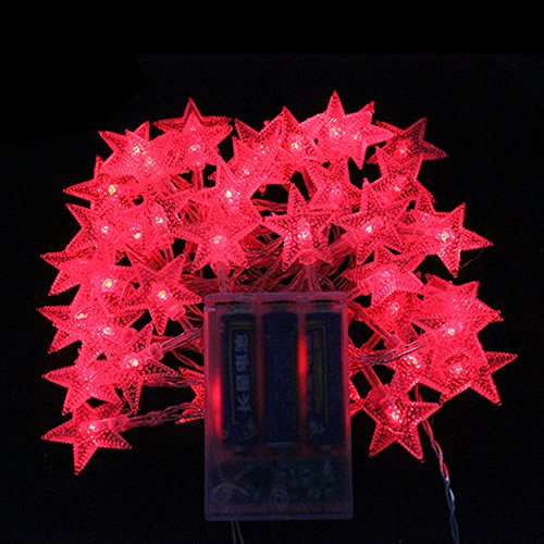 6M ledバッテリーフェアリーストリングライト イルミネーションライト led イルミネーション 電池式 クリスマス 飾りライト 5つ星のスター コンセント不要 クリスマスパーティーウェディング用 レッド