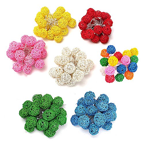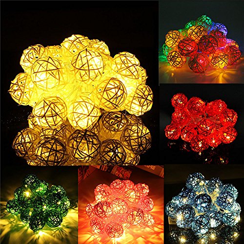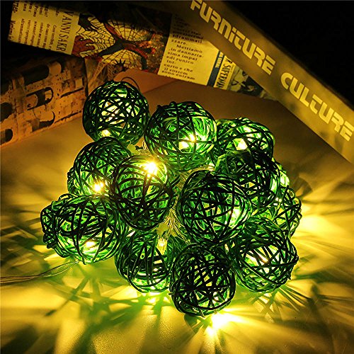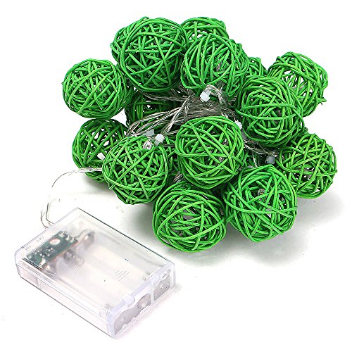 20LED レッドラタンボール ストリングライト クリスマス ウェディングパーティー飾りライト バッテリー式 LEDイルミネーションライトランプ グリーン