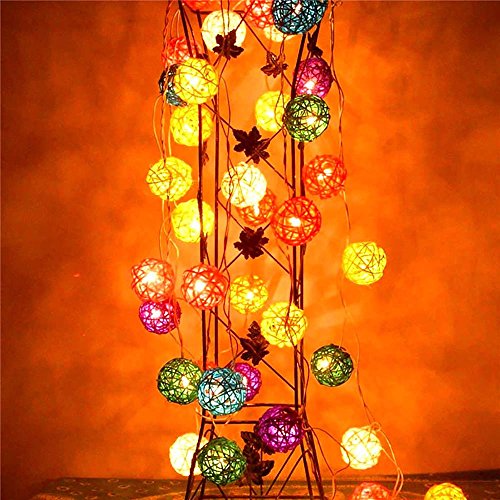 20LED レッドラタンボール ストリングライト クリスマス ウェディングパーティー飾りライト バッテリー式 LEDイルミネーションライトランプ カラフル