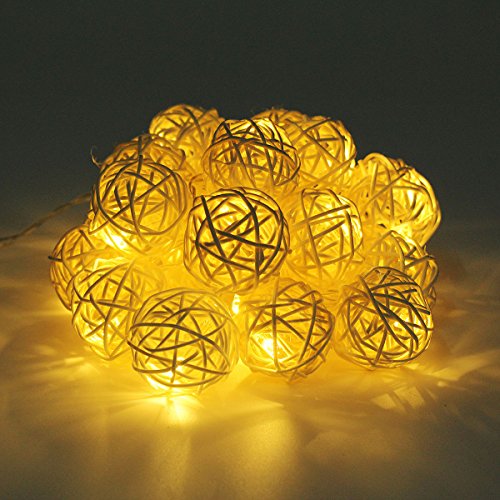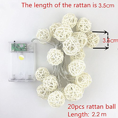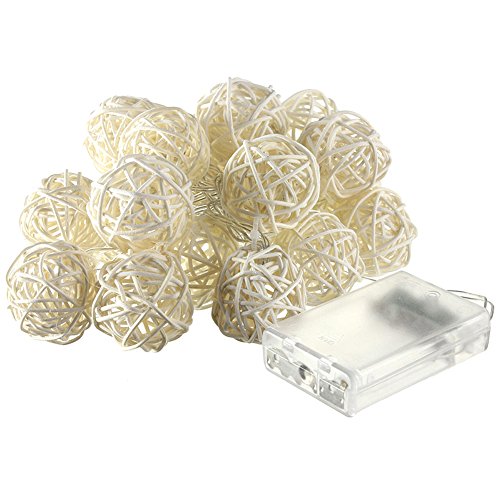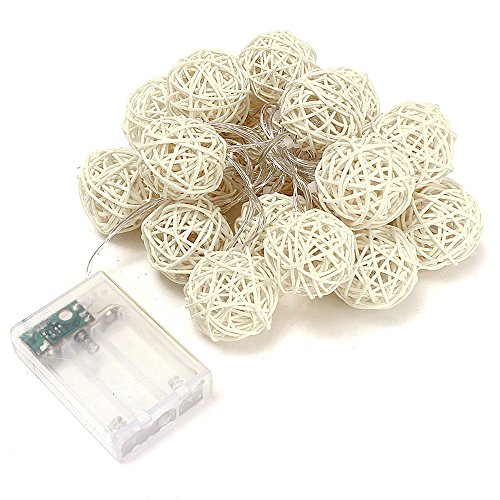 20LED レッドラタンボール ストリングライト クリスマス ウェディングパーティー飾りライト バッテリー式 LEDイルミネーションライトランプ ベージュ