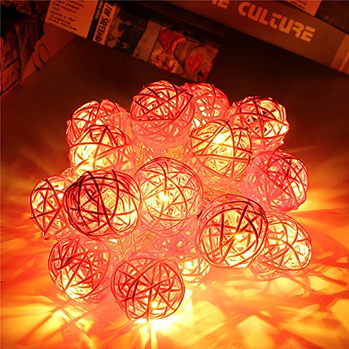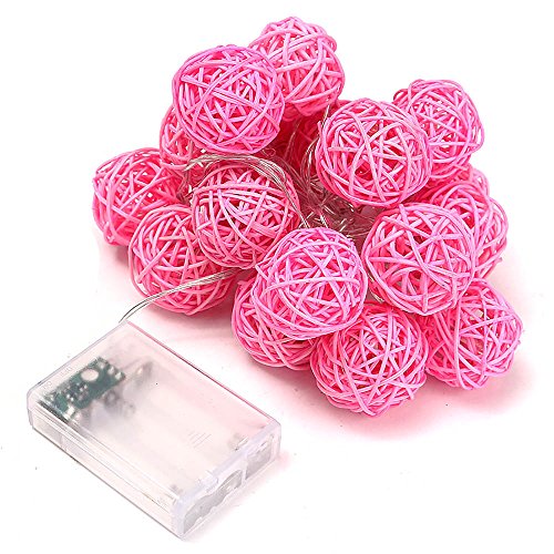 20LED レッドラタンボール ストリングライト クリスマス ウェディングパーティー飾りライト バッテリー式 LEDイルミネーションライトランプ ピンク