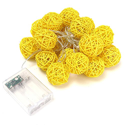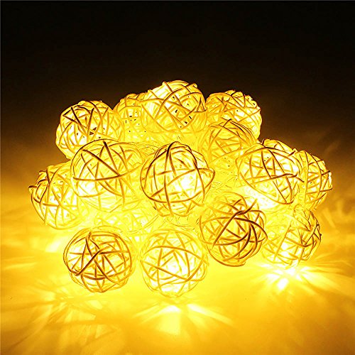 20LED レッドラタンボール ストリングライト クリスマス ウェディングパーティー飾りライト バッテリー式 LEDイルミネーションライトランプ 黄色い