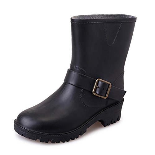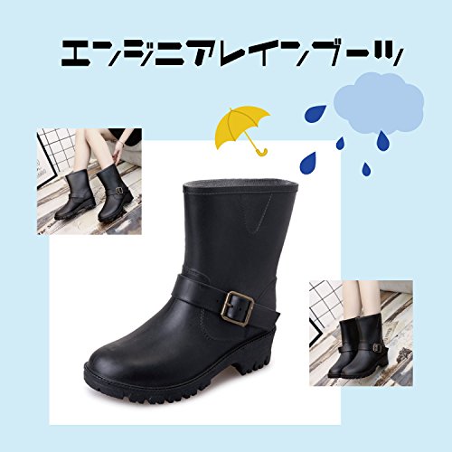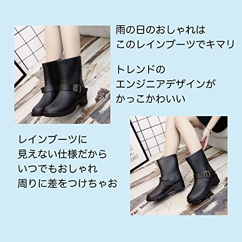 - 通勤 通学 雨 雪に活躍するレディース エンジニアレインブーツ 黒色です。ゆったりとして筒周りと合わせやすいミドル丈にベルトをあしらったデザインです。20代30代40代50代と履いていただけます。