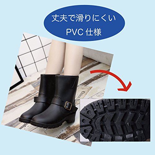 - 【アッパー】PVC,防水性あり 【色】黒 【ヒール】約3cm 【ソール】滑りにくい加工で、防滑性あり 【筒丈】約19cm 【筒周り】約33cm ゆったり履いていただけます。