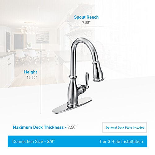 Spot Resist stainless resists fingerprints and water spots, Equipped with the Reflex system for smooth operation, easy movement and secure docking of the spray head, Features Duralock quick connect system for easy installation, Designed to be installed thru 1 or 3 holes; escutcheon included, limited lifetime warranty