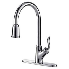 1 or 3-hole installation with optional deck-plate included. 2-function pull-down spray head with NEOPERL aerator 1.8gpm max @ 60psi. Copper tube inlet with 1/2" male NPSM connection. Ultra faucets "arc Collection" single handle kitchen faucet with pull-down spray head and limited lifetime warranty