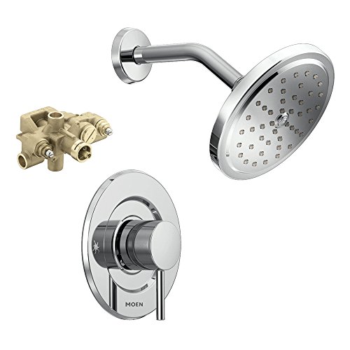Kit includes showerhead with trim and 1/2-in CC rough-in;6-in diameter showerhead features full spray and self-pressurizing Moen Immersion rainshower technology (2.5 gpm);Complies with Americans with Disabilities Act (ADA) specifications;Built on the Moen M-PACT common valve system, allowing you to update the faucet style in the future without replacing any plumbing;Limited lifetime warranty