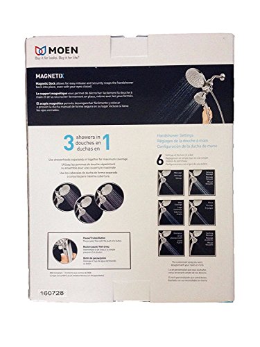 Moen 26008 Magnetix 手持ち/雨シャワーヘッド 2イン1コンボ 特徴的な磁気ホルダーテクノロジー 26008srn