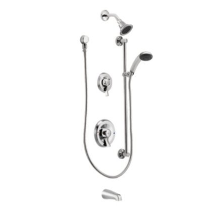 Moen Commercial's M-Dura heavy-duty commercial tub/shower line is crafted to keep users safe, keep budgets in check and keep performing use after use. Moen's trim kits feature heavy-duty all-metal construction with a finish choice of standard chrome or upscale LifeShine Classic Brushed Nickel, with an all new vandal-resistant showerhead design engineered to enhance the user's experience at all flow rates including standard 2.2gpm and Water Sense certified flow rates of 1.5gpm and 1.75gpm. Pair with the proven performer, Moen's brass Posi-Temp valve, to eliminate shower shock caused by pressure fluctuation in the supply system. And to ensure safe, consistent operation and your piece of mind, M-Dura flow-optimized showerheads and hand showers paired with Moen Posi-Temp or Moentrol valves meet the performance requirements of ASSE1016 when tested as low as 1.5gpm. In addition, Inlet connection options allow for faster, easier installation. All backed by a five-year limited warranty.