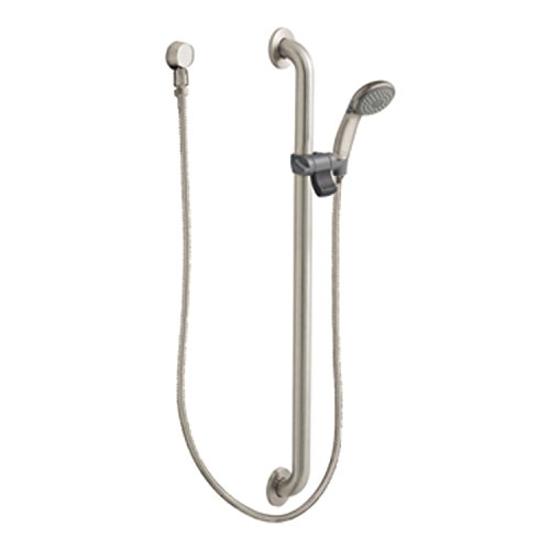 Moen 52236GBM17CBN Commercial M-Dura Slide Bar/Grab Bar with Hand Shower, 1-1/2-Inch x 36-Inch, 1.75-gpm, Classic Brushed Nickel/Stainless [並行輸入品]