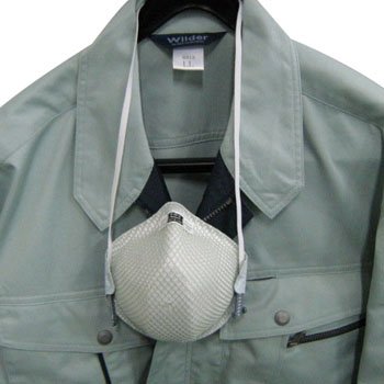 用途 / 溶接作業、研磨・研削作業、グラインダー作業、粉砕作業、セメント・粉末薬品などの粉体取扱作業、バフ作業、鋳造の砂処理作業、農薬散布(粉剤)など 特長 / メモリー機能(復元性)を持った特殊ネットでカバー。型くずれしにくく耐久性に優れます。折りたたんでポケットに入れても大丈夫! 独自の立体形状を採用。わずらわしいノーズピースがなく、どなたの顔にもピッタリフィットします。 優れた粉じん捕集効率、呼吸が楽で着けたまま会話ができます。 空中に飛散・浮遊する有害な粉じんなどが発生する作業に役立ちます。 装着しやすいフック付きゴムを採用。マスクを外した時、首からぶら下げることができます。 使用限度時間(h) / 社内基準値8 吸気抵抗上昇値(Pa) / 社内基準値140以下 平均値116 排気抵抗(Pa) / 社内基準値50以下 平均値38.5 ぬれ抵抗値(Pa) / 社内基準値50以下 平均値41.3 もれ率(%) / 社内基準値5.0以下 平均値1.2 二酸化炭素濃度上昇(%) / 社内基準値1.0以下 平均値0.59