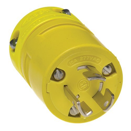 Woodhead 2434 Super-Safeway Plug, Industrial Duty, Locking Blade, 2 Poles, 3 Wires, NEMA L7-15 Configuration, Rubber, Yellow, 15A Current, 277V Voltage [並行輸入品]