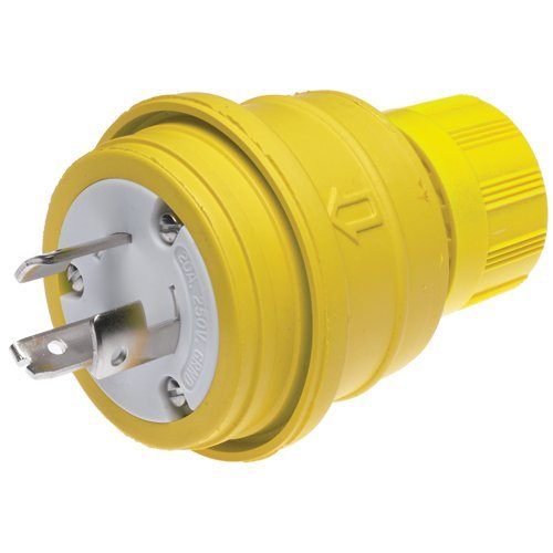 Woodhead 26W08G Watertite Wet Location Locking Blade Plug, Grounding Tab, 3 Wires, 3 Poles, Yellow, 20A Current, 250V Voltage [並行輸入品]