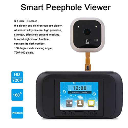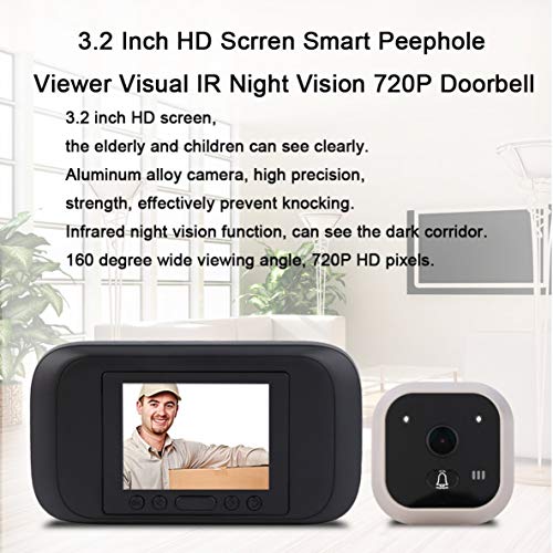 MolySun ドアベル ワイヤレス 玄関3.2インチHD ScrrenスマートピープホールビューアビジュアルドアベルIRナイトビジョン720P 160度眺望ホームセキュリティドアベル(黒)