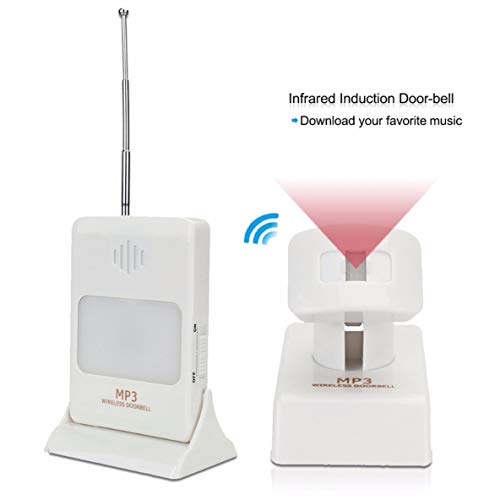 MolySun ドアベル ワイヤレス 玄関デジタルワイヤレスドアベル180度広視野赤外線トランスミッターレシーバーロングレンジショップホームホテル(白)