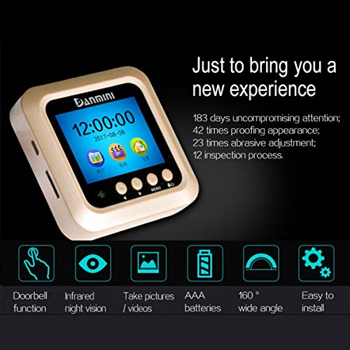 MolySun ドアベル ワイヤレス 玄関Danmini Q5 2.4インチTFTカラースクリーンディスプレイナイトビジョンカメラビデオ孔雀カメラビジュアルドアベルナイトビューアー(ゴールド)