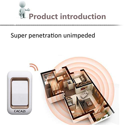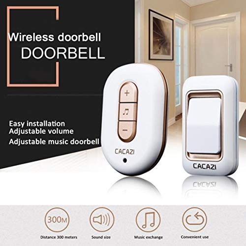 MolySun ドアベル ワイヤレス 玄関プラグインワイヤレスドアベル300MリモートコントロールACドアリング防水ボタン高齢ページャートランスミッタレシーバ(金)