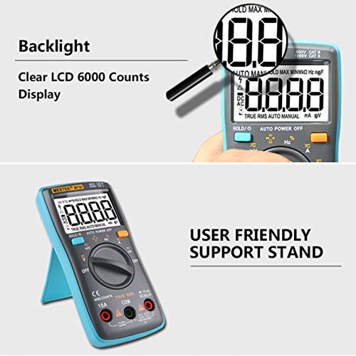 MESTEK MT101ミニデジタルマルチメーターTrue RMS Auto Range 6000は、AC/DC Volt Ampオーム容量性周波数ダイオードテスターをカウントします(カラー:グレー&ブルー)