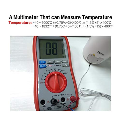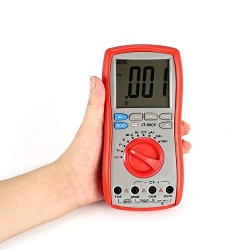 JT-99CFハンドヘルドデジタルマルチメータAC / DC 1999年電圧測定オーム温度周波数ダイオード連続性試験機(色:グレーおよびレッド)