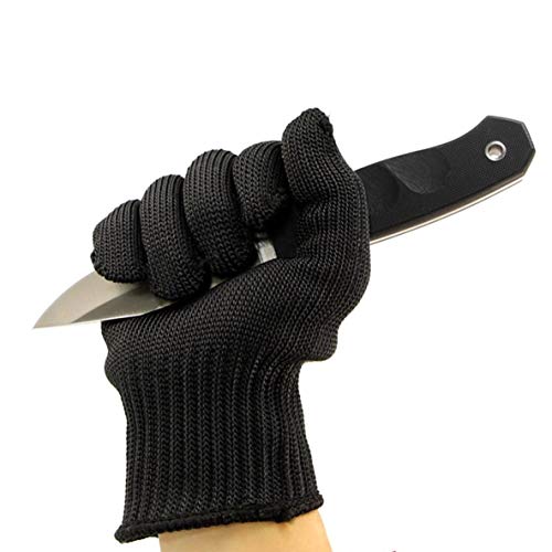 MolySun 手袋 作業用 手袋1対の男のスチールワイヤーフィッシングフィレグロブスカット耐性スレッドウィーブツールグローブフィッシングフィレットプロテクションナイフ(黒)