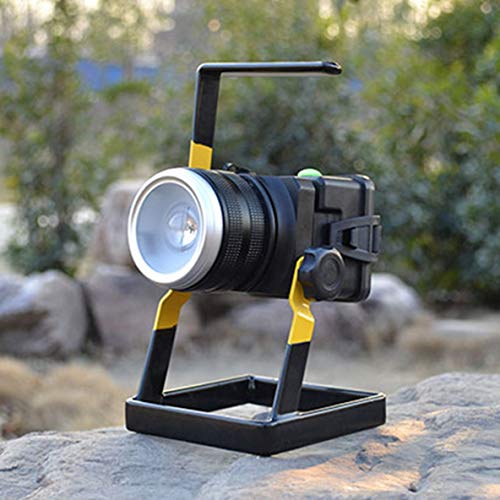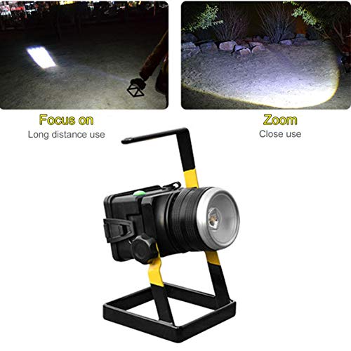LED投光器 ポータブルLED作業灯回転ズームT6LED投光器ポータブルランプ屋外照明懐中電灯ホルダー付き充電式投影ランプ(色:黒と黄色)