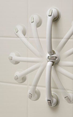 Swivels to allow positioning for different needs;Toddlers can enter a wet and slippery tub safely;Simply press the tab levers to securely attach;Adheres best on smooth, non-porous surfaces;Can be used on shower walls too;Easy to install and remove just flip the tabs;Ensure the cups are not placed over the grout lines while installing for the best gripping.