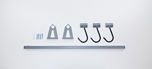 - Materials: 2 Small Brackets, 4 Screws Washers, 1 bar, 3- J Hooks and installation instructions.